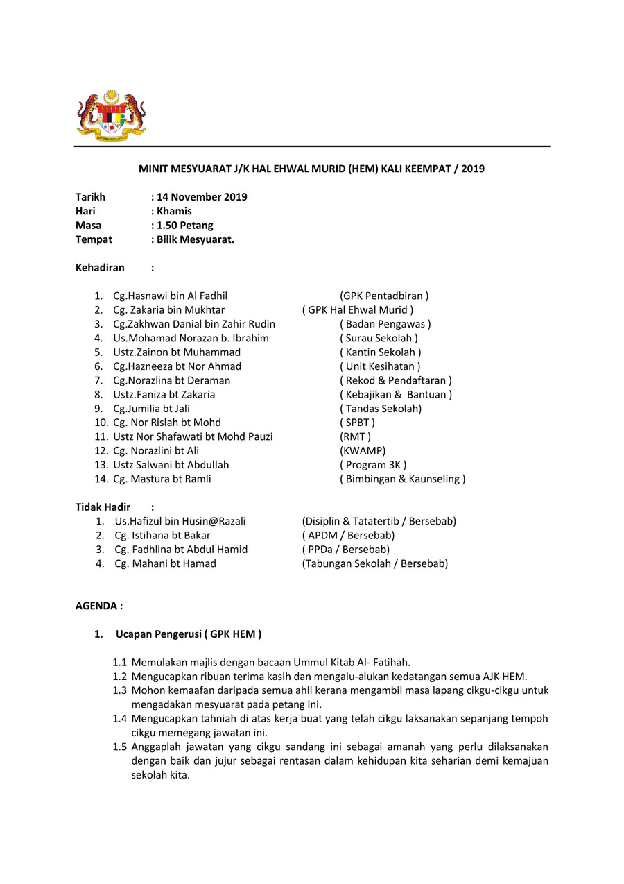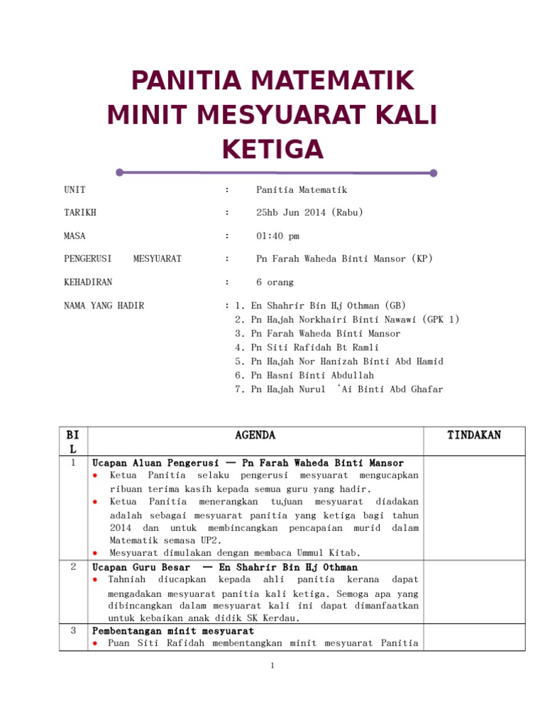 Jangan lupa share kepada kawan2 ya pada group whasapp dan telegram.klik sahaja button share tersebut. Minit mesyuarat ajk smach90 kali pertama tarikh : Penulisan minit mesyuarat disediakan oleh: Download lagu minit mesyuarat hem kali 1 mp3 dapat kamu download secara gratis di metrolagu. Salah satu kepentingan minit mesyuarat adalah sebagai bukti pertemuan atau perbincangan antara dua pihak.